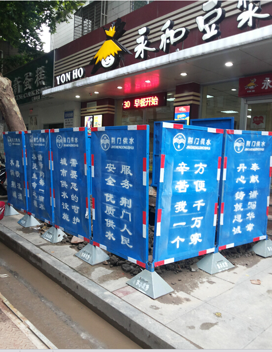 維修處本著經濟可行的原則對原來的55塊安全警示牌進行了改造,制作了新式底座,對牌面進行了打磨拋光上漆。利用牌面進行供水公益廣告宣傳,噴涂了“城市供水設施需要您的呵護”、“水是生命之源,請節(jié)約每一滴水”、“辛苦我一個,方便千萬家”等公益廣告。這一廣告載體展示了企業(yè)形象,成為街頭巷尾的一道靚麗風景線,收到了一致好評。
