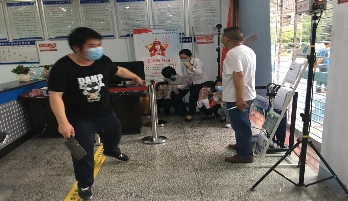 “搶劫!都老實(shí)點(diǎn)!雙手抱頭!蹲旁邊去……”兩蒙面男子持刀沖進(jìn)了收費(fèi)中心龍泉營業(yè)廳。原來,一場別開生面的防盜搶演練正在進(jìn)行。