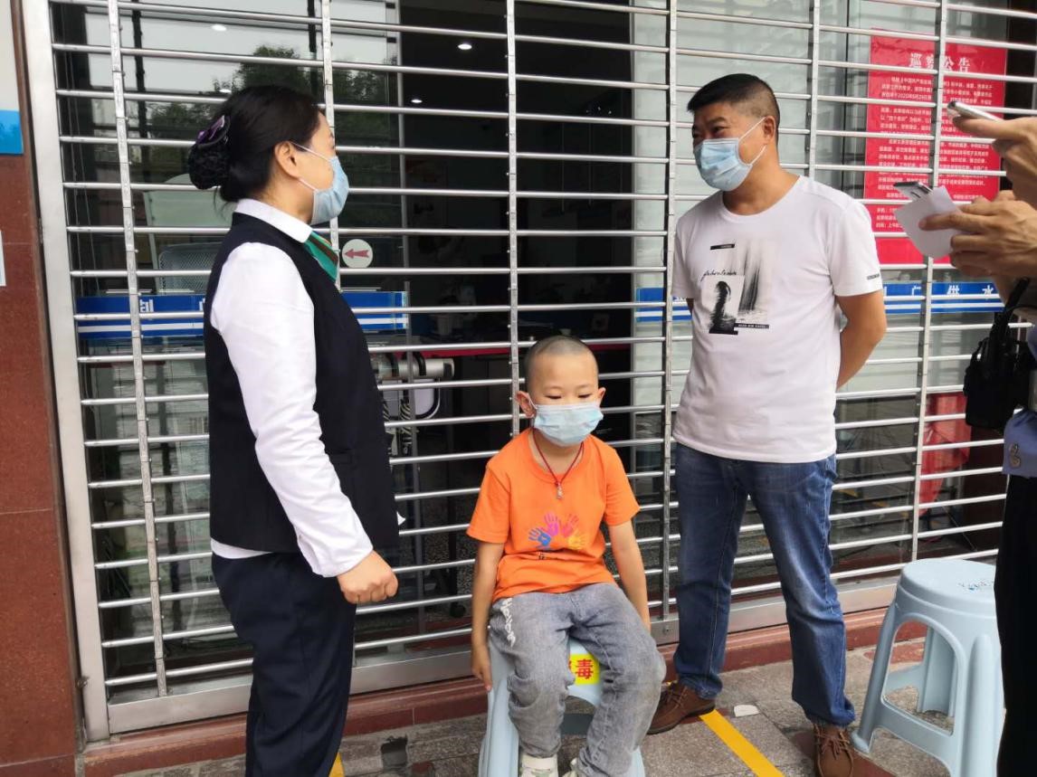 當(dāng)日中午,龍泉營業(yè)廳大堂經(jīng)理王萍發(fā)現(xiàn)一名年幼的小男孩獨(dú)自坐在營業(yè)廳門前的馬路邊哇哇大哭,臉上一臉驚恐。極具責(zé)任心和愛心的王萍急忙上前詢問發(fā)生了什么事?從孩子口中得知,他是大悟人,上午和媽媽、妹妹到西寶山游玩時(shí)走散了,又不知道回家的路,他很著急,不知道該怎么辦。
