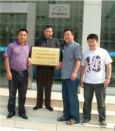 27日上午,竹園路盲人王良付在親友的攙扶下,將寫有“關(guān)心弱勢群體疾苦,彰顯供水企業(yè)責(zé)任”的匾牌送到市供水總公司。