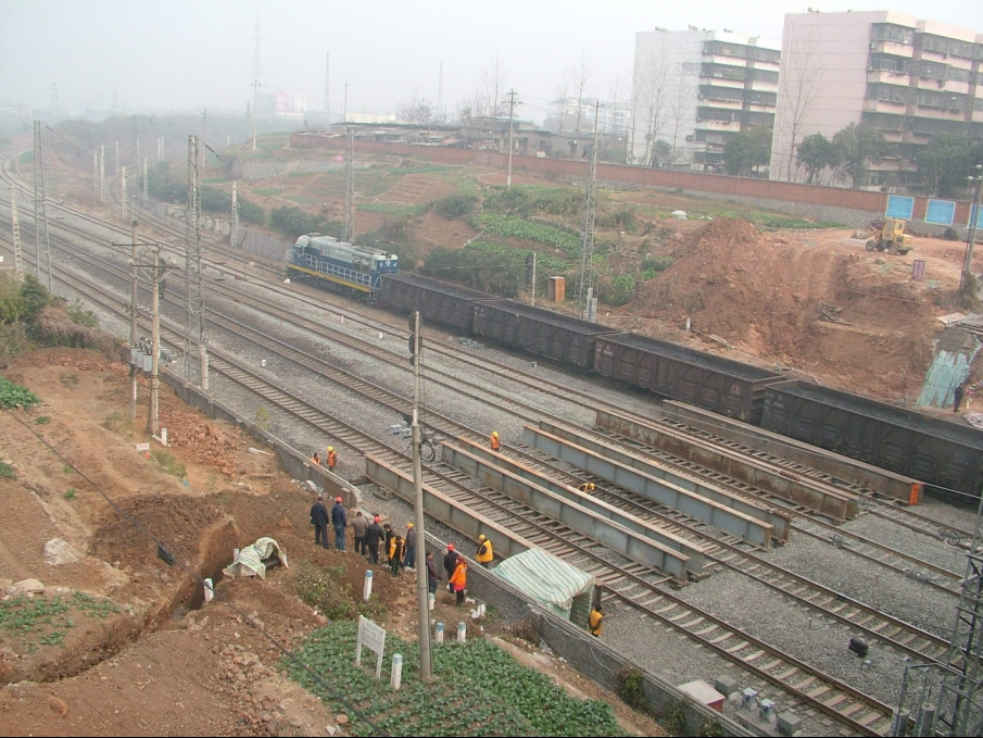 按照以前的規(guī)劃,通往城東、東寶工業(yè)園及子陵鎮(zhèn)的是一條DN400供水主管,隨著東城區(qū)的發(fā)展,特別是東寶工業(yè)園建設(shè)如火如荼,供水需求旺盛,用水高峰時(shí)形成瓶頸。為了服務(wù)了好東寶工業(yè)園、東城區(qū)、子陵鎮(zhèn)用戶(hù),供水公司擬訂了從泉口一路引一條DN800供水主管,穿越焦柳鐵路,與月亮湖北路DN400管道貫通,破解用水瓶頸的施工方案。但因要穿越鐵路,涉及到多個(gè)部門(mén)以及技術(shù)、安全等考量,困難重重,工程從2006年啟動(dòng)后,協(xié)調(diào)任務(wù)繁重,施工難度大,市政府、市住建委領(lǐng)導(dǎo)都很重視,多次參與協(xié)調(diào),公司總經(jīng)理、黨委書(shū)記都多次上門(mén)協(xié)調(diào),在武漢鐵路局支持下,2013年確定施工合同,2013年10月動(dòng)工,2014年元月10日完工。 經(jīng)供水公司與鐵路部門(mén)協(xié)調(diào),武漢鐵路局、武鐵設(shè)計(jì)院、西南設(shè)計(jì)院擬訂采用架空項(xiàng)進(jìn)法穿越焦柳鐵路線(xiàn)5股道,定制鋼筋砼套管,管節(jié)間采用鋼板內(nèi)漲圈接口。在調(diào)查鐵路信號(hào)、通信光電纜徑路及數(shù)量,在確保鐵路運(yùn)輸安全的原則下進(jìn)行防護(hù)設(shè)計(jì)。武漢鐵路局工務(wù)檢測(cè)所編制施工圖。項(xiàng)目委托武鐵江騰公司具體施工。供水公司則完成穿管、銜接施工。
