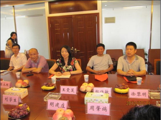 圖為十堰市物價局領導偕十堰市自來水公司董事長劉學生、東風汽車公司水務公司總經理周肇端與我司交流。