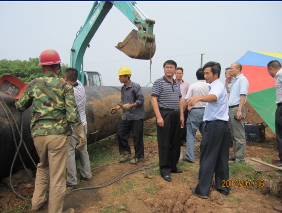 總經(jīng)理陳衛(wèi)國(左四)、黨委書記陳永根(右二)在城區(qū)安全飲水工程施工現(xiàn)場聽取施工負(fù)責(zé)人匯報(bào),要求加快進(jìn)程,確保質(zhì)量,按時(shí)完工,向全市人民交上一份合格答卷。