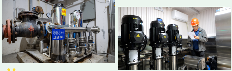 該小區(qū)物業(yè)管理員龔先生親歷了此次遷改施工全過程。嶄新的一體式泵機開機運行時,他激動不已:“真是太好了,自從二次供水設施移交給你們后,我們就像吃了一顆定心丸,都在盼著這一天呢!”