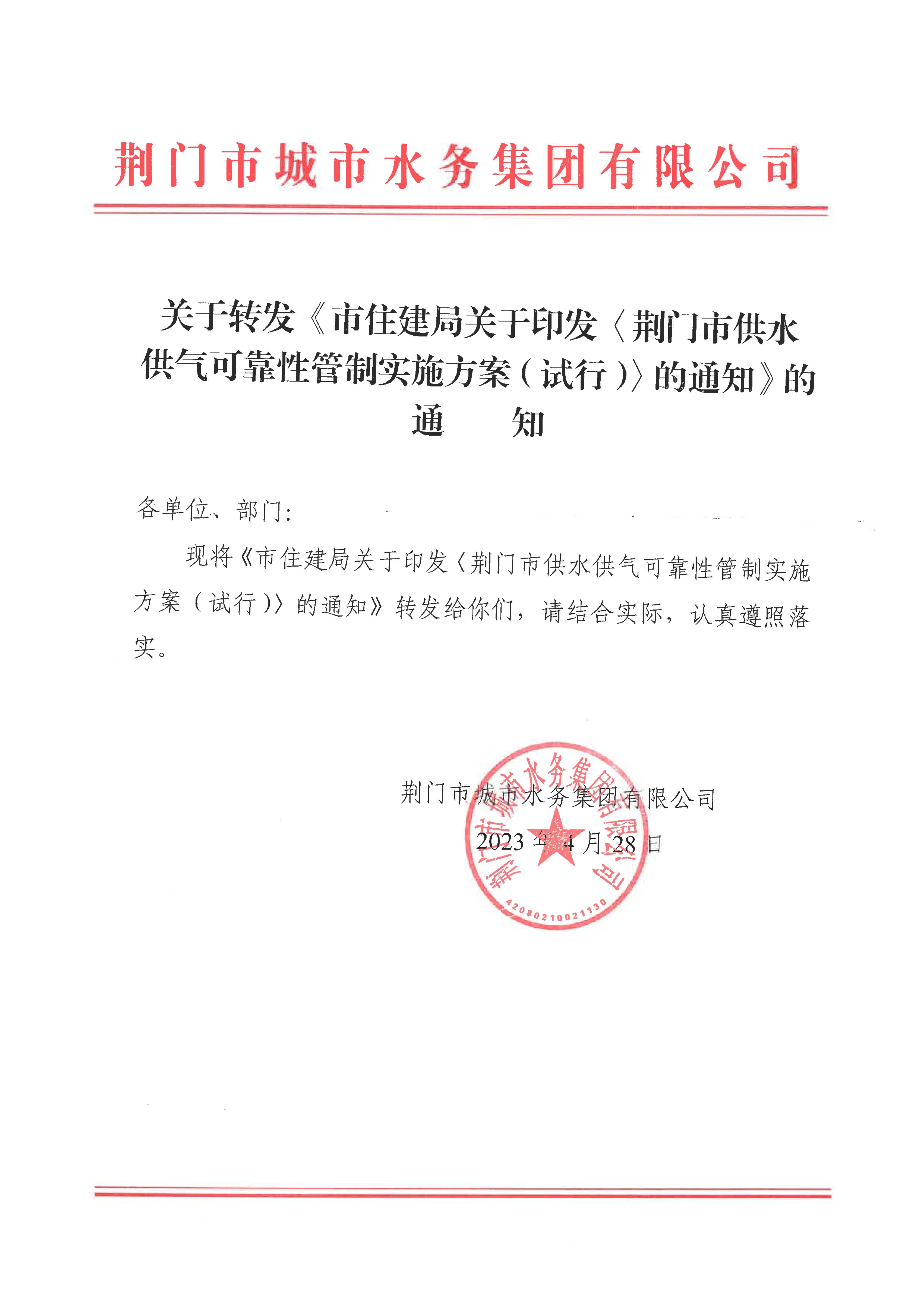 關于轉(zhuǎn)發(fā)《荊門市供水供氣可靠性管制實施方案(試行)》的通知