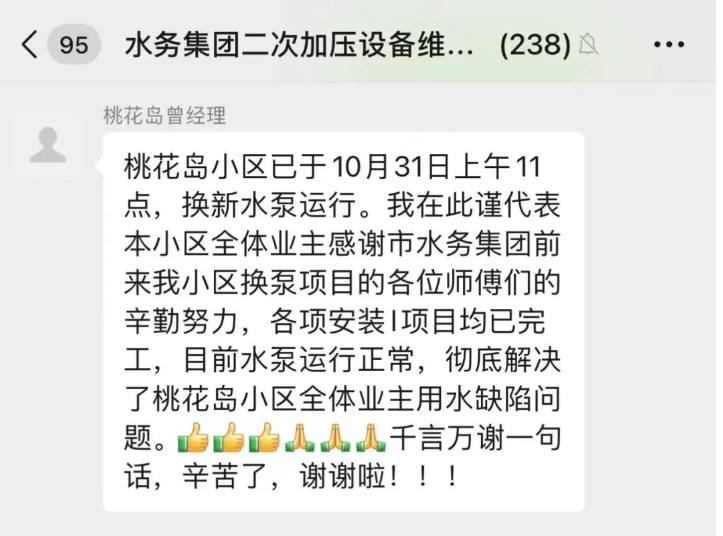 目前,東寶區(qū)現(xiàn)代花園小區(qū)二次供水泵房已完成基礎(chǔ)設(shè)施改造,待設(shè)備到貨后即可安裝、調(diào)試,投運(yùn)。第一批其余10個(gè)小區(qū)二次供水泵房改造已完成圖紙會(huì)審,預(yù)計(jì)明年1月底全部完工。集團(tuán)將堅(jiān)持用戶至上服務(wù)宗旨,嚴(yán)格按照時(shí)間路線圖推進(jìn)施工,保質(zhì)保量完成任務(wù)。改造過程中,我們將采取有效措施,最大程度減少對(duì)居正常生活帶來的不便,感謝廣大用戶的理解與支持。