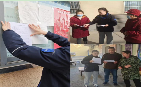 圖為工作人員張貼宣傳資料(左)并向用戶宣講防凍知識(右)
