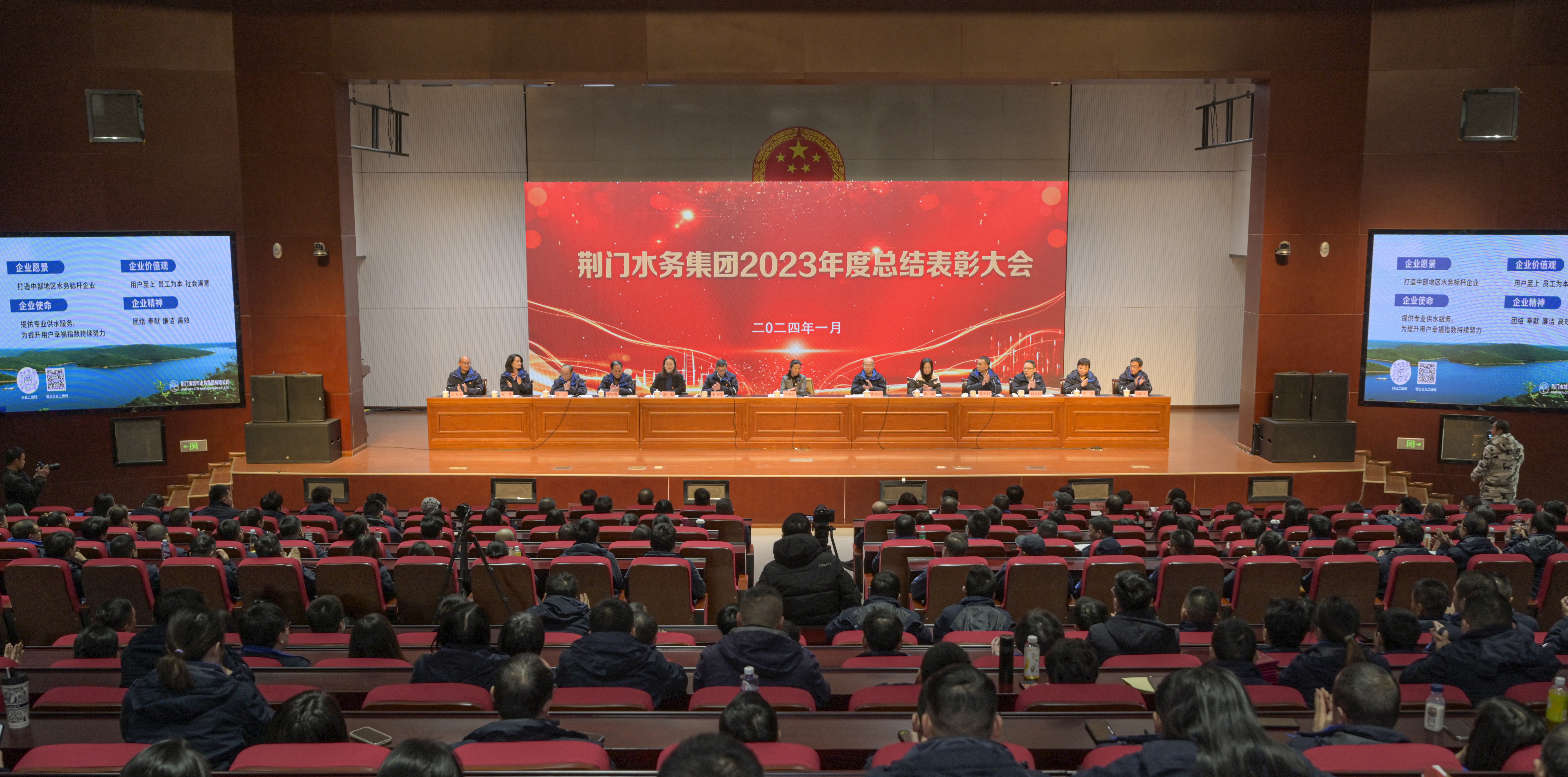 1月27日下午,市水務集團召開2023年度總結(jié)表彰大會,市國資委黨委委員、工會主席李剛娟,集團外部董事陳虹和劉雙出席,集團300余名干部職工參會。