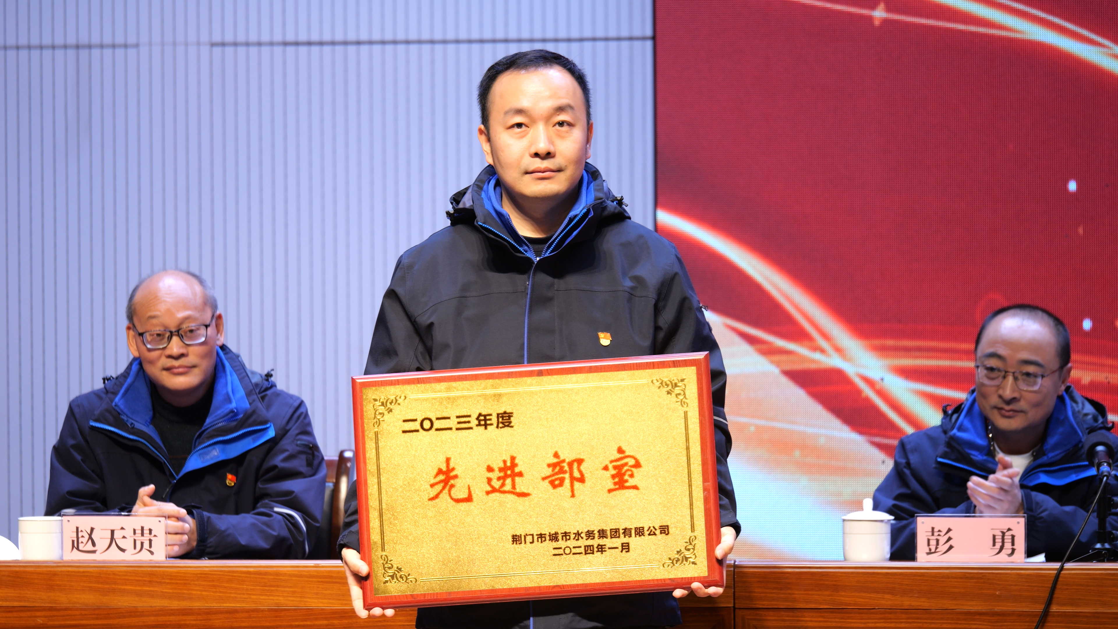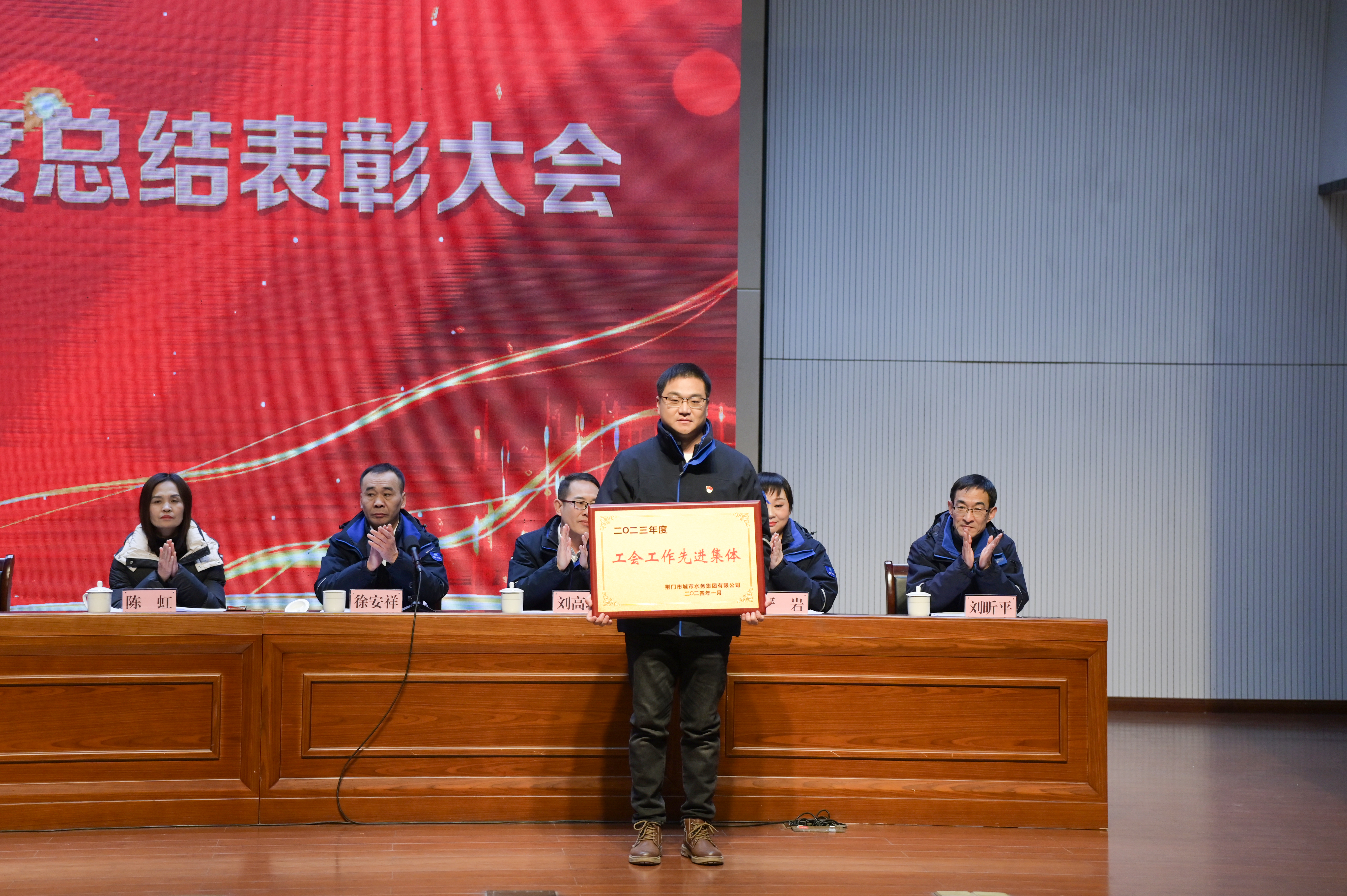 大會在雄壯的國歌聲中拉開序幕,黨委委員、副總經(jīng)理徐安祥宣讀《關(guān)于表彰2023年度文明單位、先進集體和先進個人的決定》,依次表彰了詠泉水質(zhì)、荊襄供水、潤澤建設公司等7個先進單位(集體)、一水廠維修班等19個先進班組和羅媛媛、丁凌偉等74名先進個人。