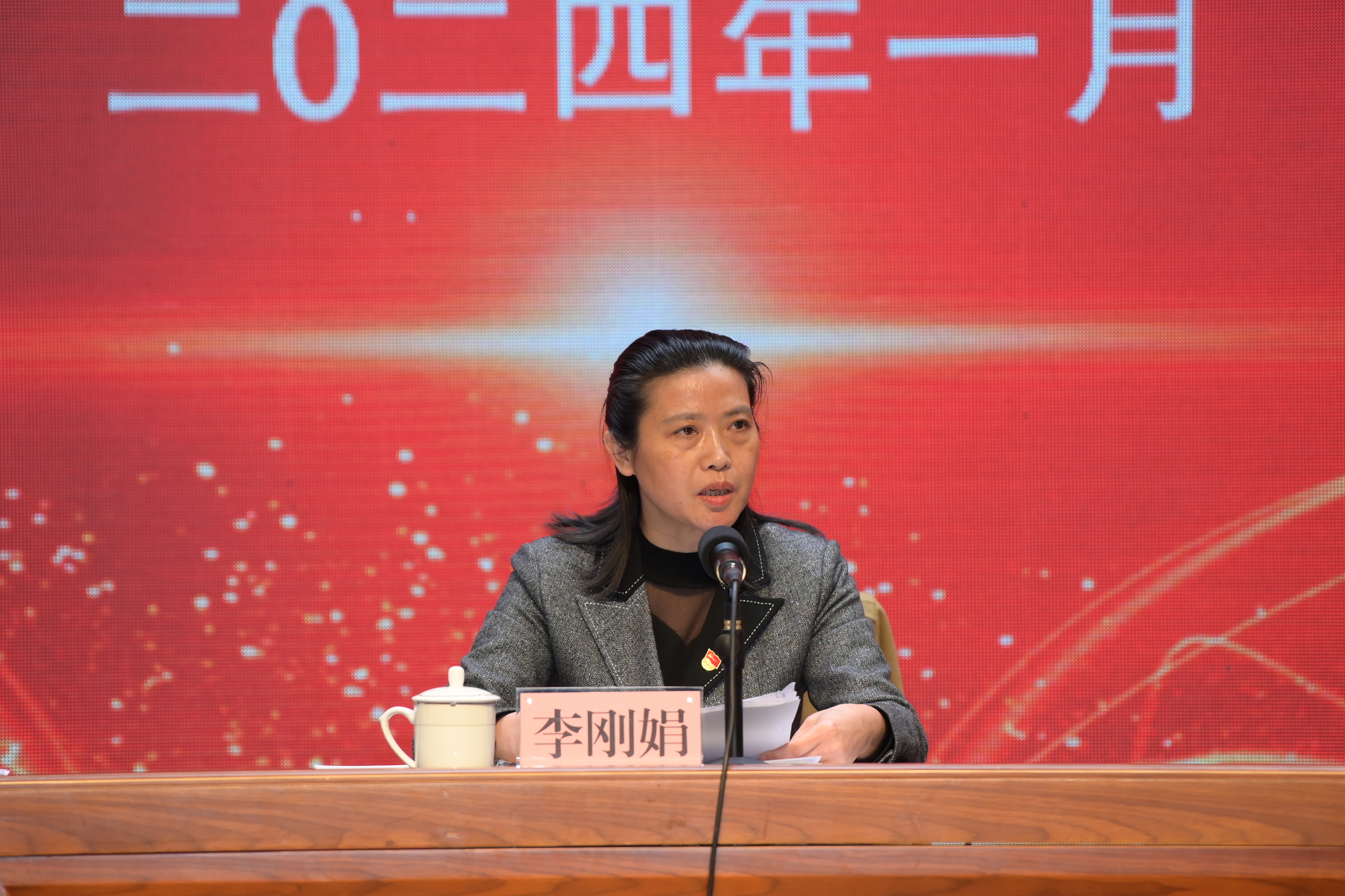 圖為市國資委黨委委員、工會主席李剛娟講話