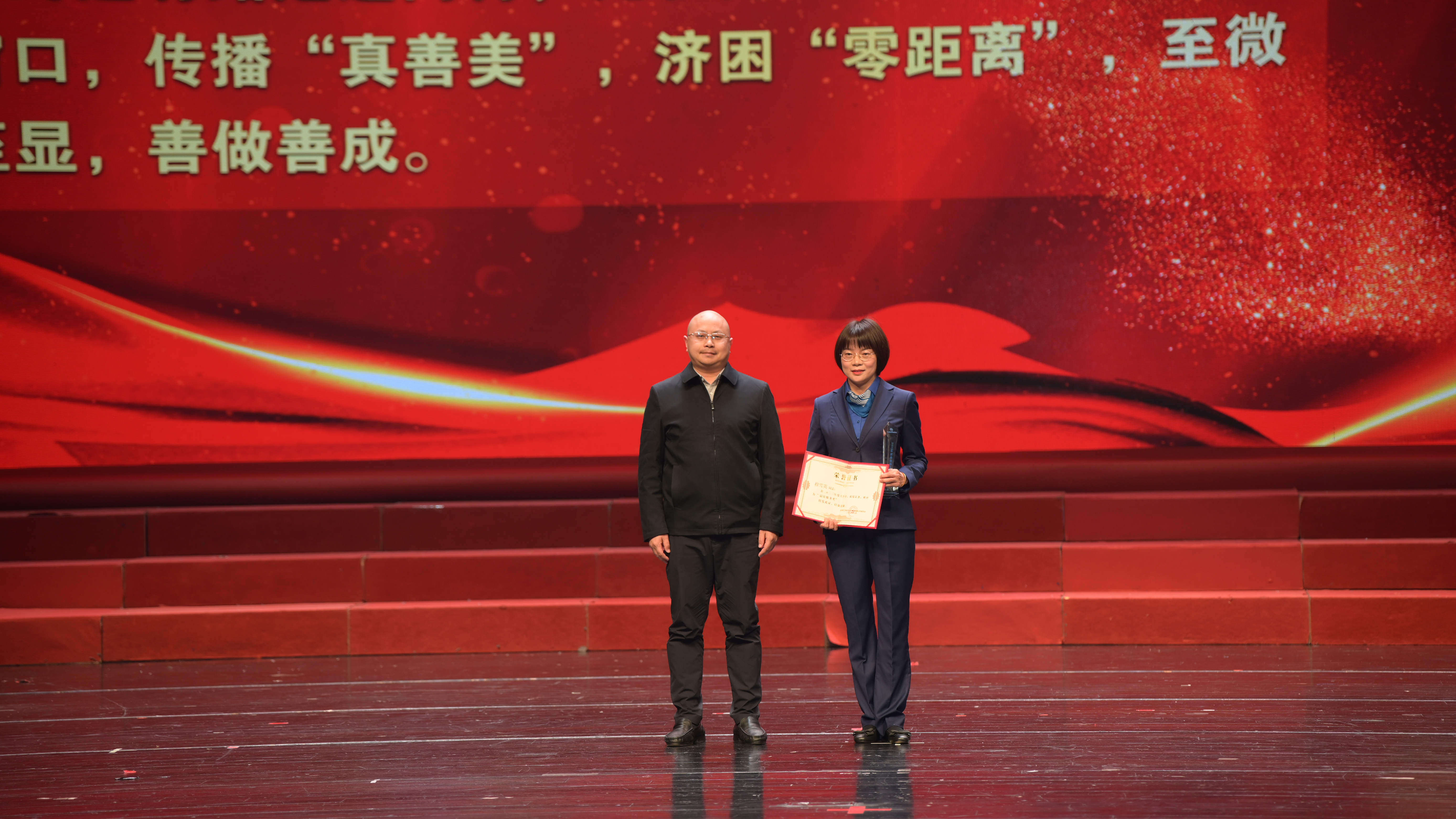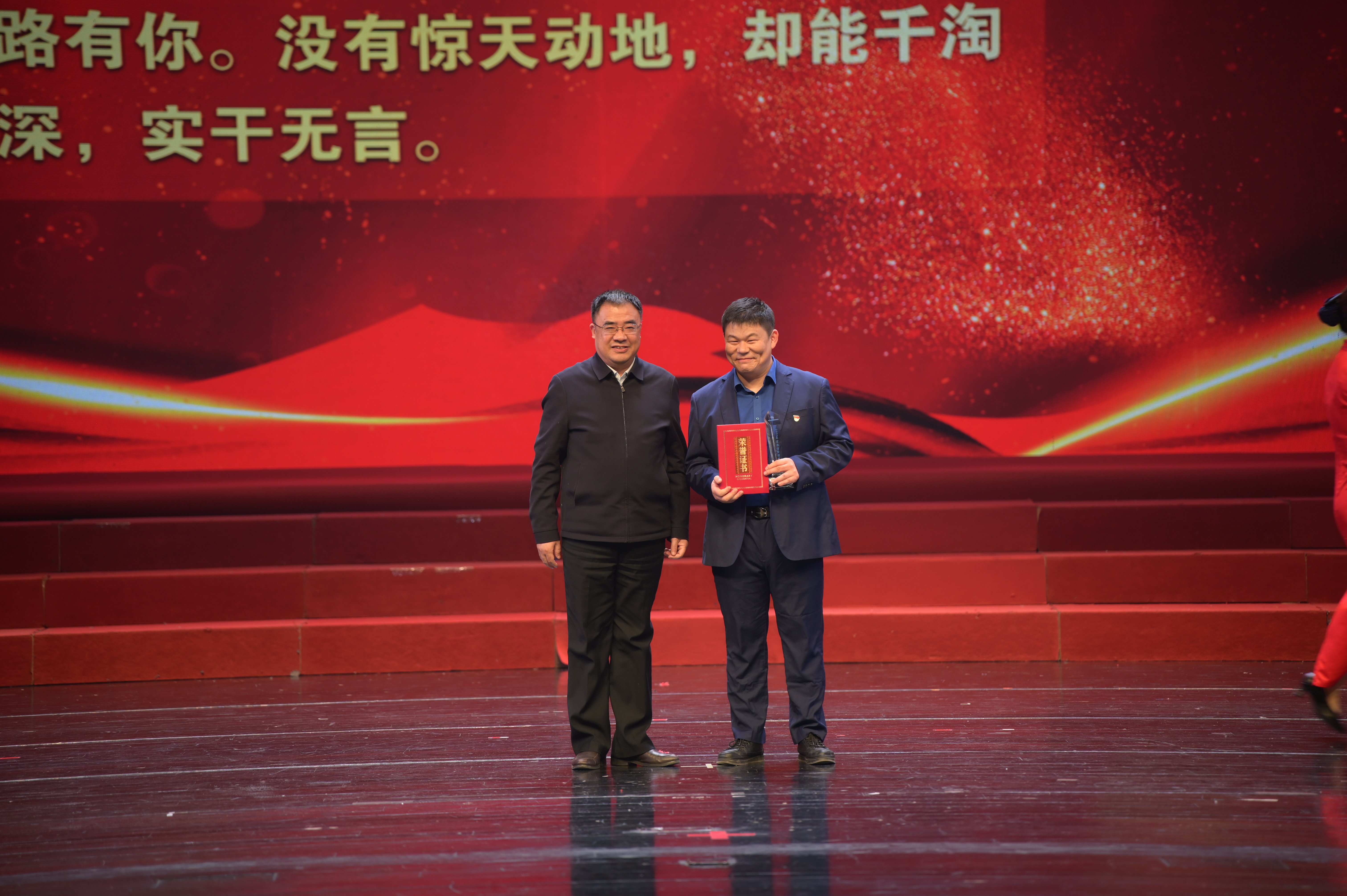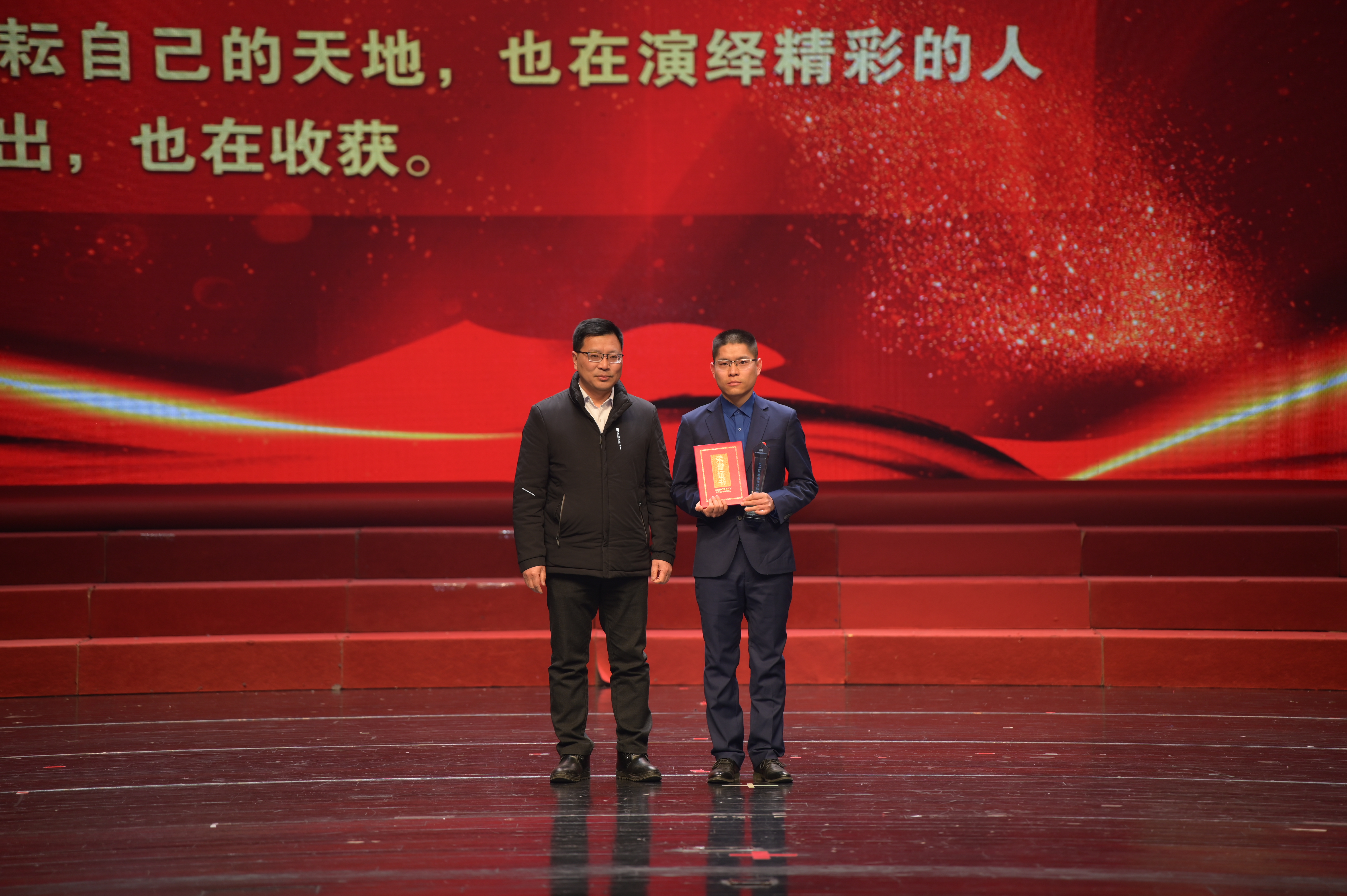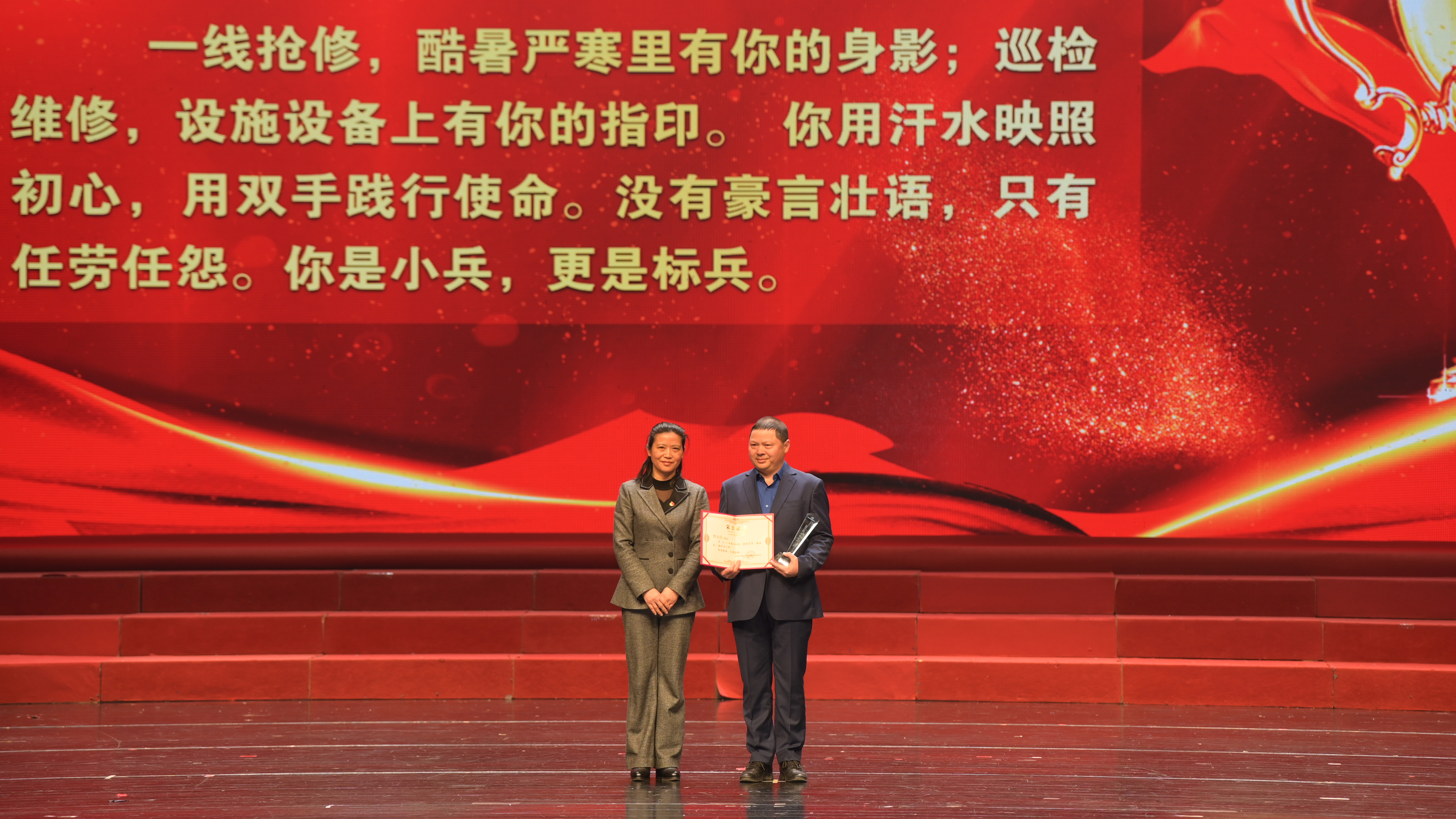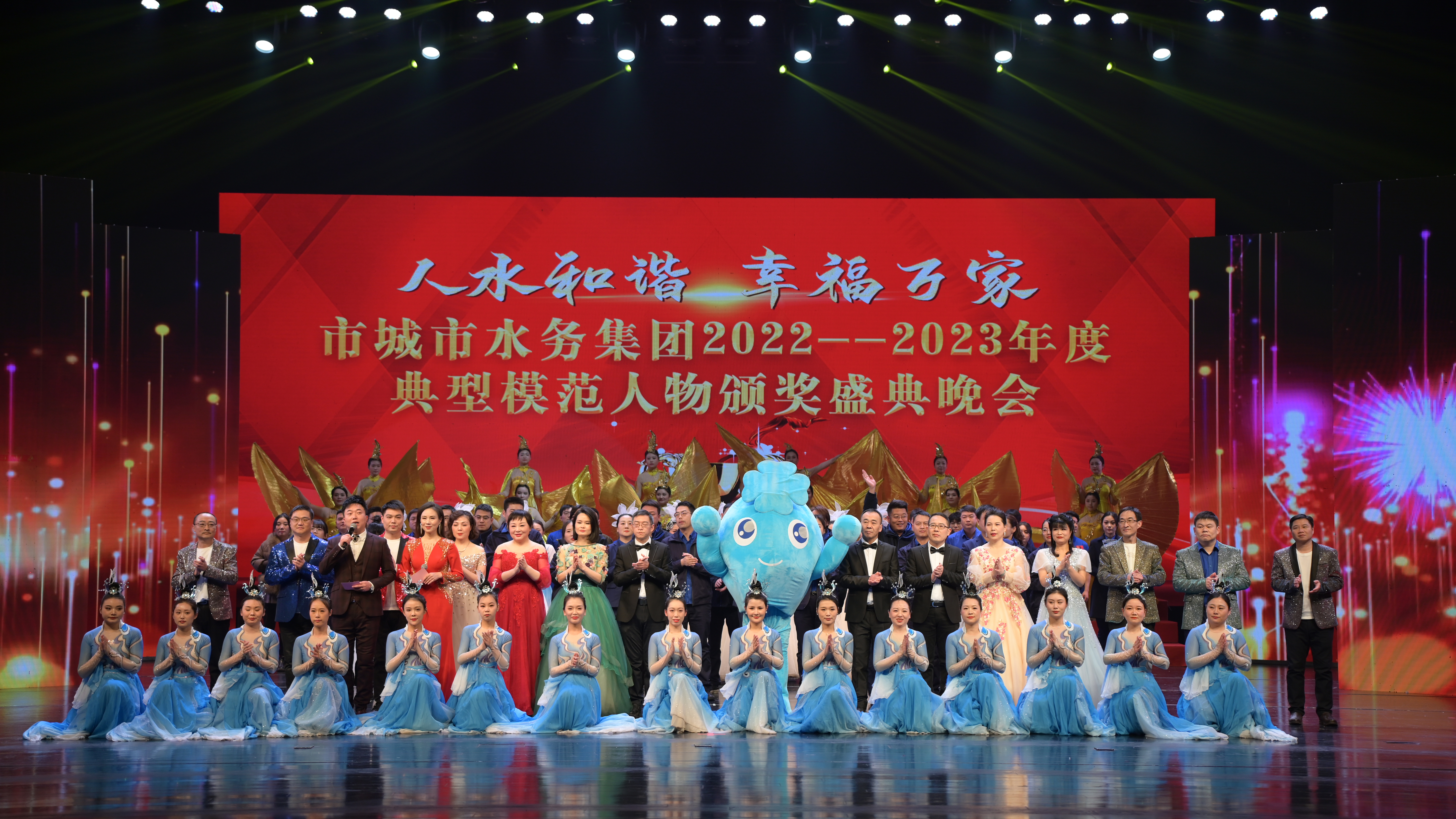 會后,在荊門劇院舉辦了主題為“人水和諧 幸福萬家”的2022-2023年度典型模范人物頒獎典禮晚會。本次晚會由集團高層領導領銜出演,115名干部職工悉數(shù)登場,創(chuàng)歷年參演人數(shù)新高。9個節(jié)目,涵蓋歌舞、說唱、走秀,類型豐富、互動活躍,為大家?guī)硪粓雠c眾不同的視覺盛宴,達到預期效果。