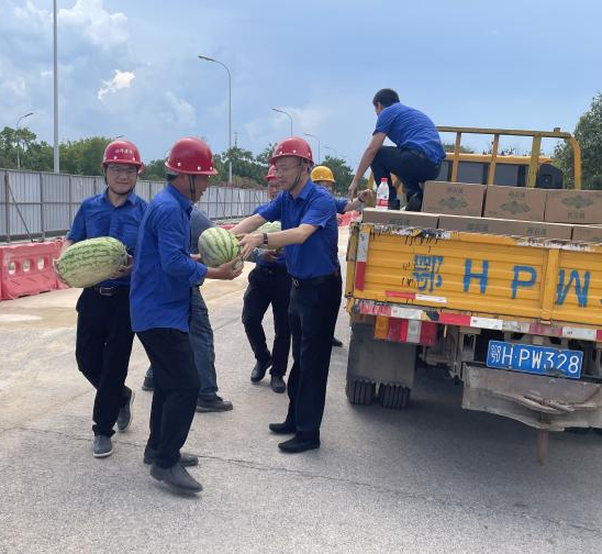 圖為集團(tuán)黨委書記、董事長(zhǎng)陳永根(左3)為基層送清涼