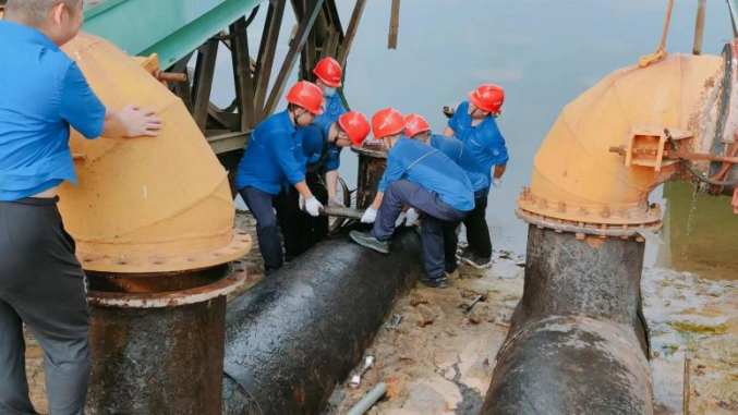 圖為水廠維修人員檢修設(shè)備