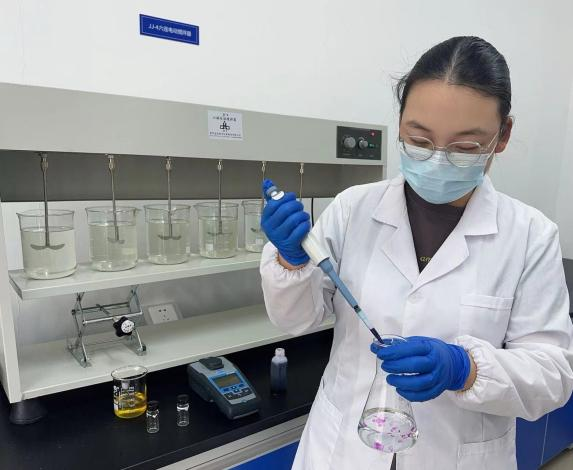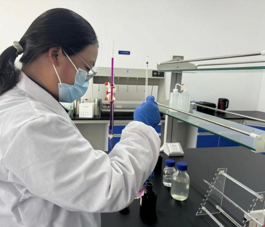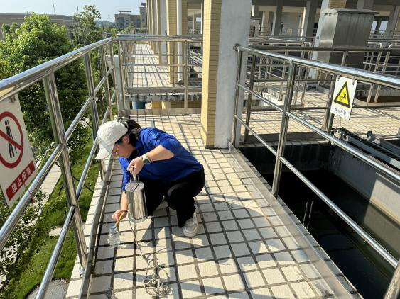 圖為詠泉水質(zhì)工作人員取水樣化驗(yàn)