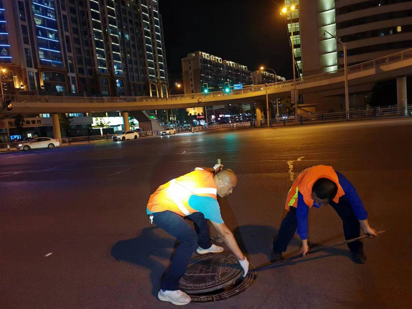 圖為管網(wǎng)運(yùn)維部工作人員夜間查漏