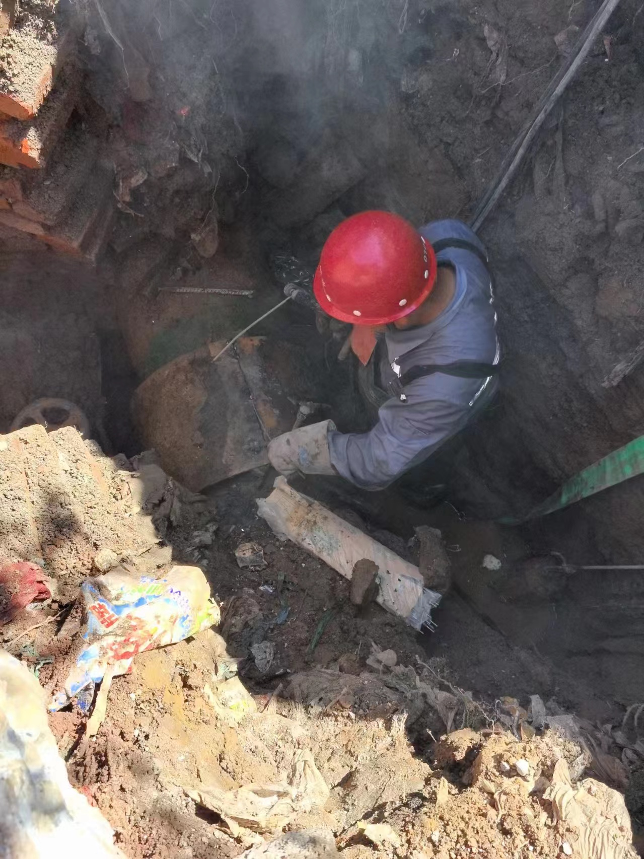 圖為維修人員維修主管道
