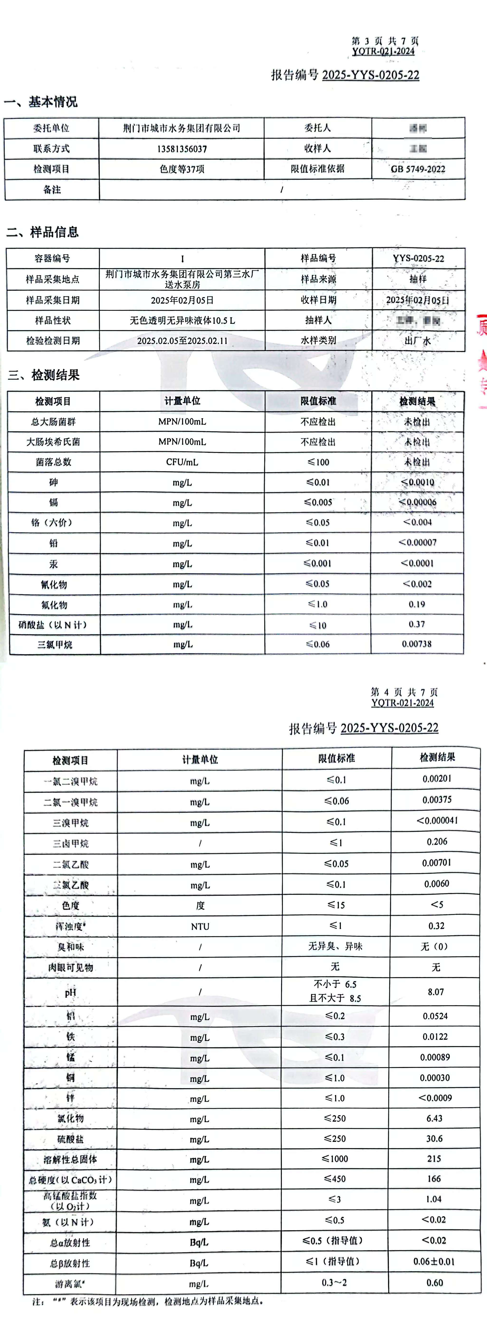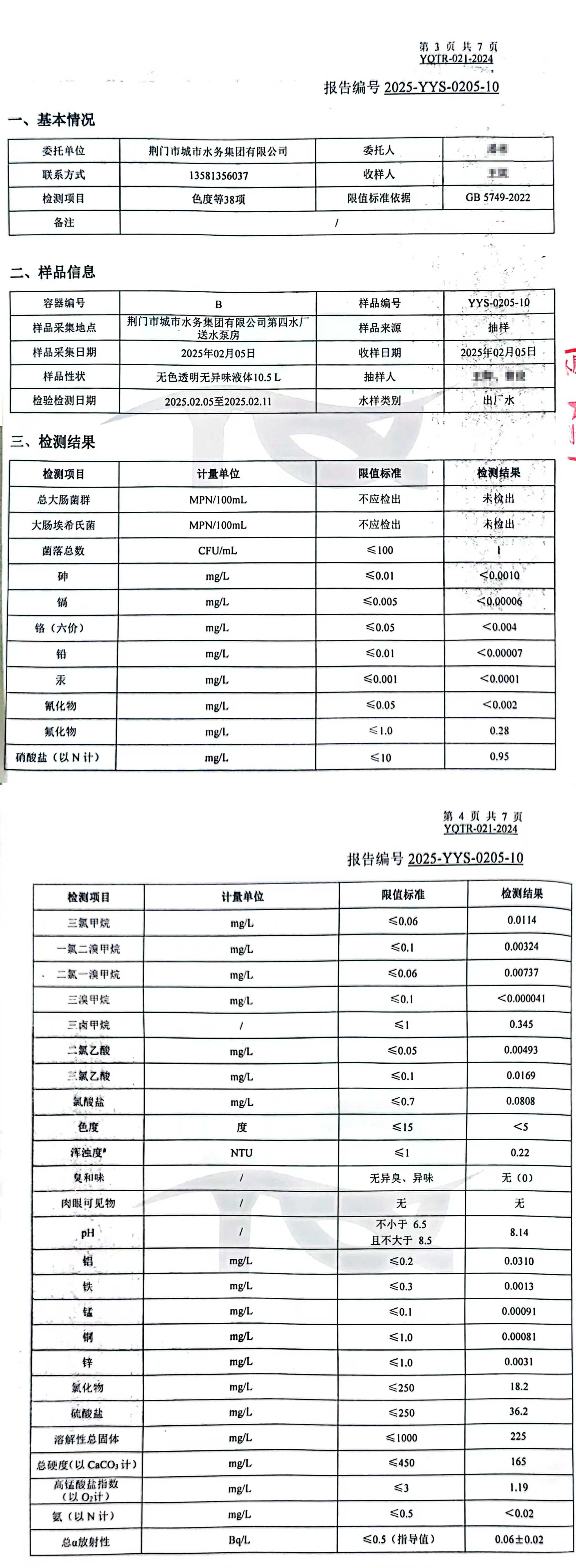 2025年2月,集團委托具有CMA認證資質的第三方檢測機構,依據(jù)《生活飲用水衛(wèi)生標準》(GB5749-2022)對“四廠一站”出廠水、管網(wǎng)末梢水進行全分析檢測,水質合格率100%。依據(jù)《地表水環(huán)境質量標準(GB3838-2022)》檢測漳河原水,檢測結果為符合Ⅱ類標準。