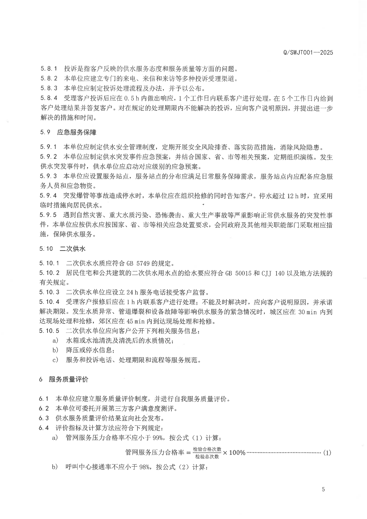 荊門水務(wù)集團(tuán)企業(yè)標(biāo)準(zhǔn)——供水服務(wù)