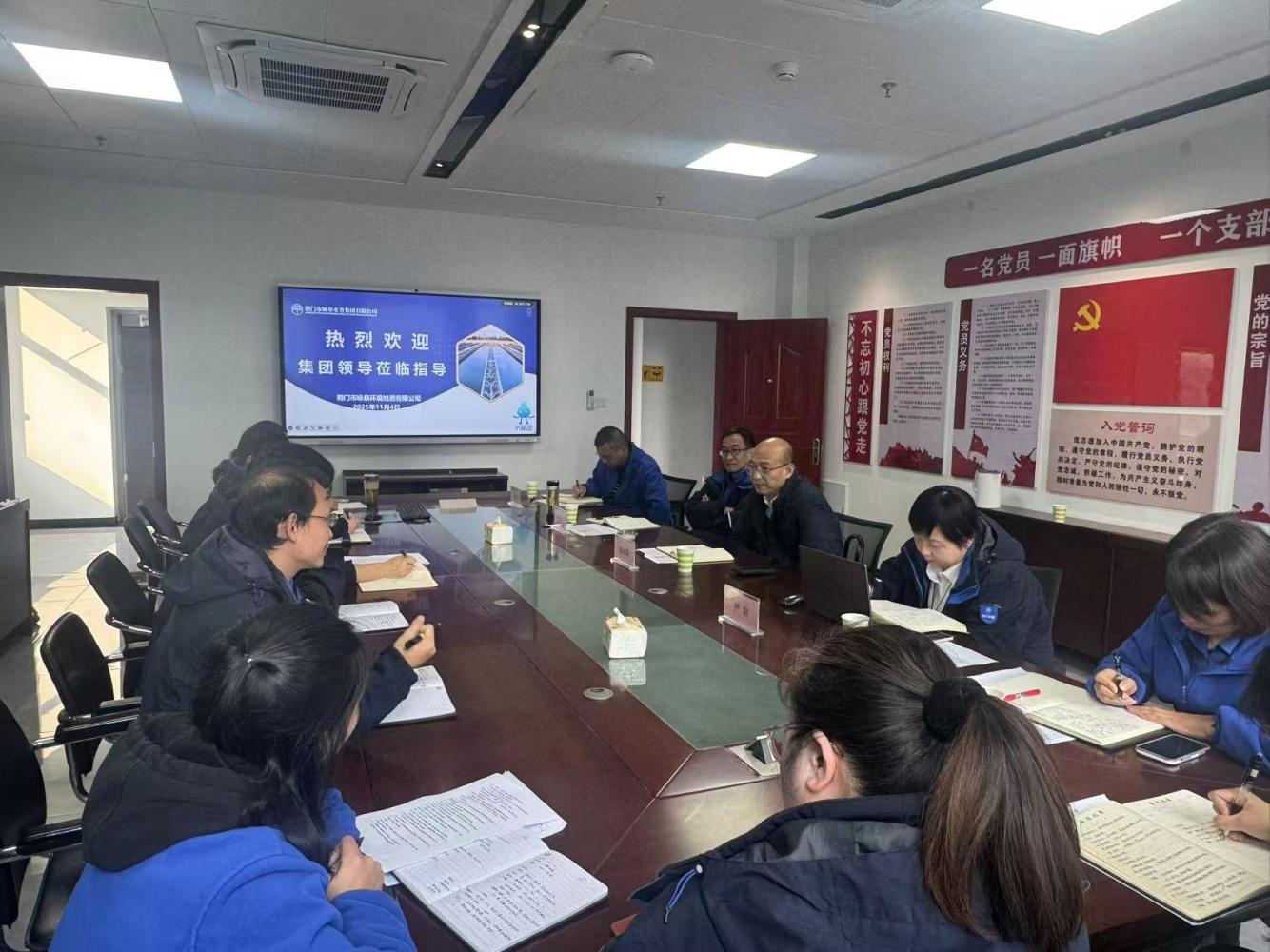 11月4日下午,市水務(wù)集團(tuán)黨委書記、董事長陳永根帶隊赴荊門市詠泉環(huán)境檢測有限公司(以下簡稱“詠泉公司”),圍繞“十四五”戰(zhàn)略復(fù)盤與“十五五”規(guī)劃開展專題調(diào)研。