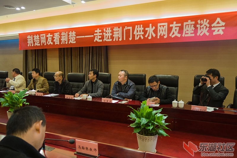 “荊楚網(wǎng)友看荊楚 —— 走進(jìn)荊門”活動探訪團(tuán)的網(wǎng)友們,于2015年11月7日下午,在下榻的荊門避暑山莊國賓酒店一樓會議室參加了 “荊楚網(wǎng)友看荊楚 —— 走進(jìn)荊門供水網(wǎng)友座談會”;座談會上供水總公司的黨委書記陳永根等同志向大家介紹了其單位的基本情況及近十年的業(yè)績和今后的工作規(guī)劃,供水總公司的領(lǐng)導(dǎo)還與網(wǎng)友們零距離的進(jìn)行了交流。