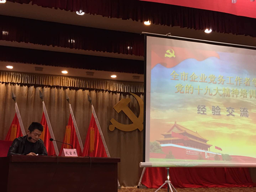 12月11日至12日,由市委組織部、市國(guó)資委聯(lián)合舉辦的全市企業(yè)黨務(wù)工作者學(xué)習(xí)黨的十九大精神培訓(xùn)會(huì)在荊門賓館召開(kāi)。會(huì)上,四家企業(yè)進(jìn)行黨建經(jīng)驗(yàn)交流,市供水總公司黨委副書(shū)記、紀(jì)委書(shū)記徐黎明就加強(qiáng)企業(yè)基層黨建工作作交流發(fā)言。