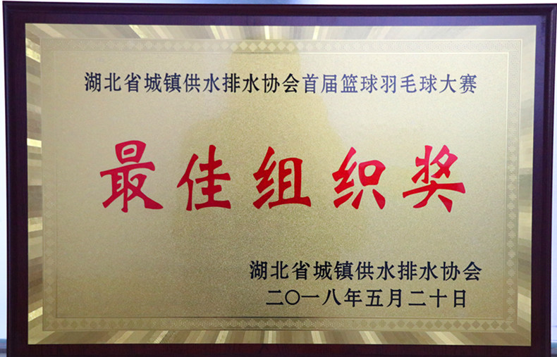 省城鎮(zhèn)供水排水協(xié)會首屆籃球賽羽毛球賽于5月16日至19日成功舉辦。鑒于市供水總公司的精心籌備和優(yōu)秀組織,省水協(xié)授予我公司最佳組織獎(jiǎng)并贈送錦旗以示感謝。錦旗上書寫:“鼎力搭建展示行業(yè)風(fēng)采平臺傾情澆灌荊楚水務(wù)友誼之花”。