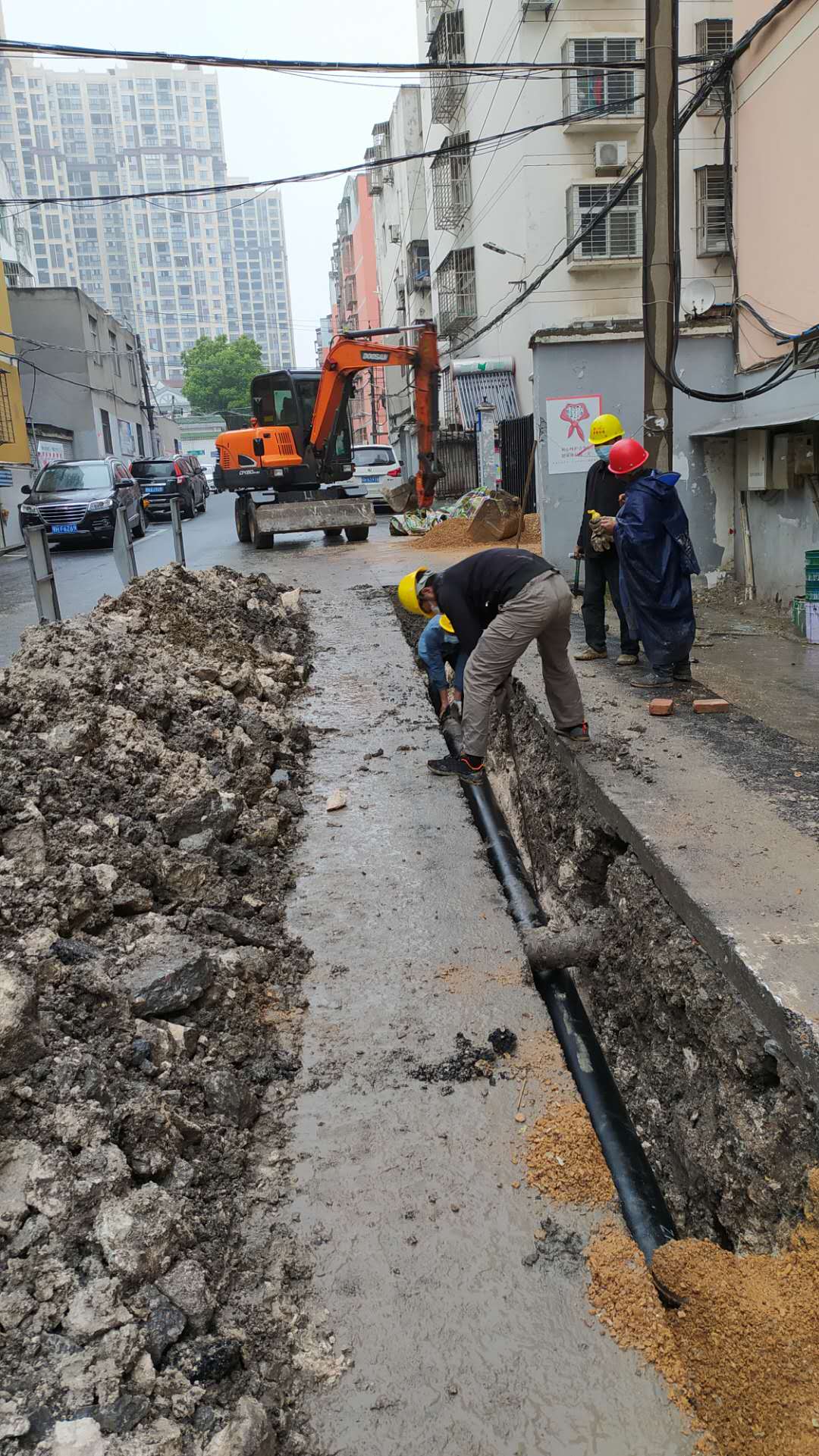 去年底,市供水總公司優(yōu)先為“退城進(jìn)園”的荊門(mén)市金豐新材料有限公司安裝了用水接入水表。今年4月下旬,公司通過(guò)供水服務(wù)回訪,第一時(shí)間得知企業(yè)廠區(qū)土建工程基本完工,而內(nèi)部供水管網(wǎng)只鋪設(shè)到廠區(qū)大門(mén)。考慮到企業(yè)具有社會(huì)福利性質(zhì)及疫情給新廠區(qū)建設(shè)造成的影響,市供水總公司特事特辦,安排工程技術(shù)人員前往現(xiàn)場(chǎng)勘查、制定施工方案,并決定為新廠區(qū)免費(fèi)安裝100余米DN160主管道。10多名精兵強(qiáng)將加班加點(diǎn)將供水管材、施工設(shè)備提前運(yùn)達(dá)施工現(xiàn)場(chǎng),熔管、焊接、鋪管……安裝工程緊鑼密鼓開(kāi)展,5月1日,順利通水,為項(xiàng)目早日投產(chǎn)打下基礎(chǔ)。