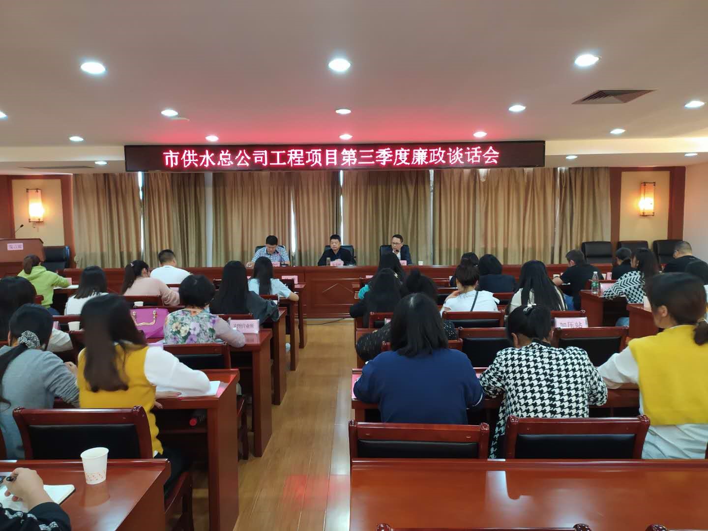 為進一步做好財務工作,提高財務人員廉政意識,防范財務風險,9月24日下午,市供水總公司舉行工程項目(財務管理方面)第三季度廉政談話會。公司黨委副書記、紀委書記徐黎明主持會議,黨委委員、總會計師劉高軼進行廉政談話,總公司財務部全體工作人員、各獨立核算二級單位財務分管負責人和全體財務人員、非獨立核算二級單位和機關各部門報賬員,公司紀委委員、各支部紀檢委員參加會議。