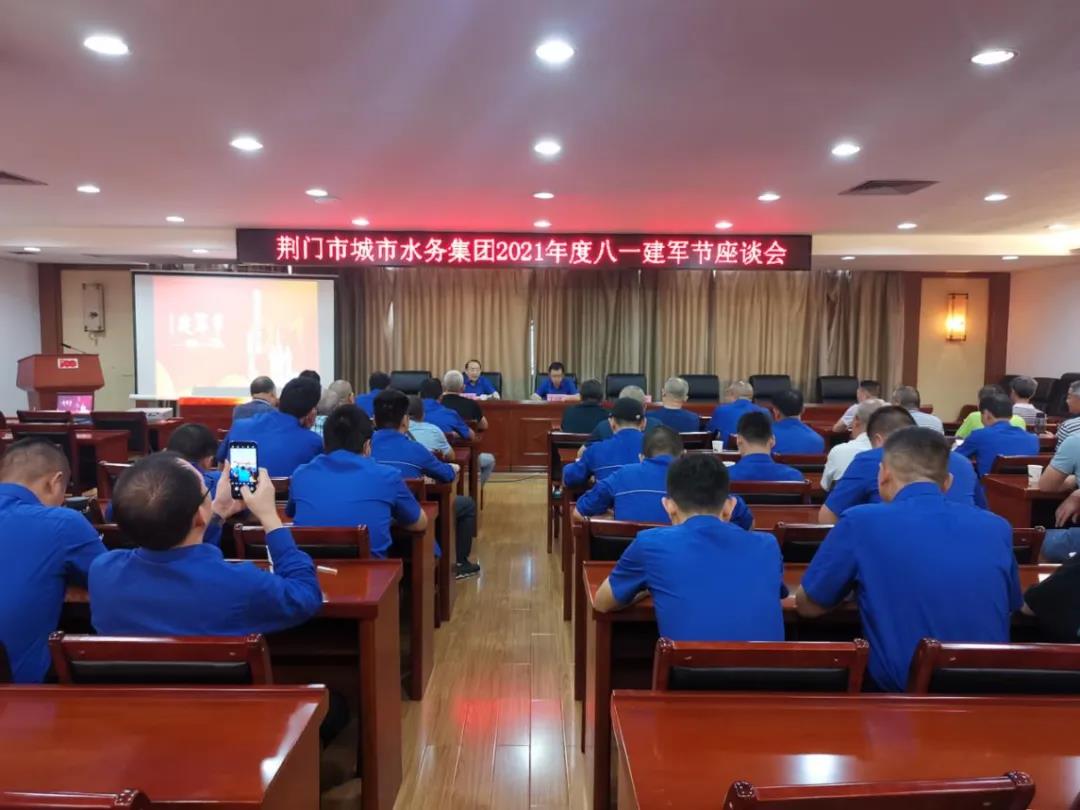 為慶祝中國人民解放軍建軍94周年,發(fā)揮荊門水務(wù)擁軍護(hù)軍的光榮傳統(tǒng),7月26日,荊門市城市水務(wù)集團(tuán)有限公司召開“八一”建軍節(jié)座談會,邀請了集團(tuán)五十多位退伍軍人職工歡聚一堂。會議由黨委委員、工會主席馬兆芳主持,集團(tuán)黨委副書記、總經(jīng)理王小鋒參加了本次會議。